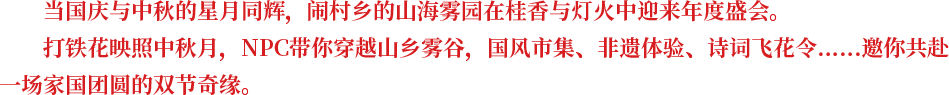 锁定十一!闹村 triple kill 狂欢:中秋雅集+非遗打铁花+星空烟花秀,嗨翻小长假!