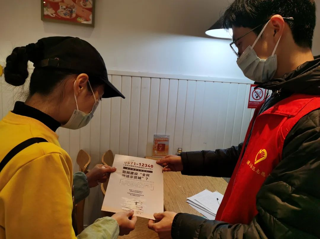 坚持文化文明同频共振,依托文明格志愿红力量,深入开展全民阅读入户宣传“敲门行动”,向居民发放全民阅读宣传资料2万余份,并在各小区业主群广泛发动辖区群众参加全市居民阅读指数网络问卷模拟调查,以进一步加大全民阅读推广力度,倡导全面形成“全民读书我参与”的良好社会氛围。