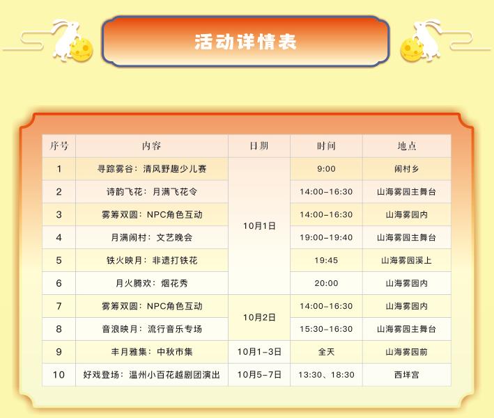 温州网讯 金秋十月将至,团圆情愫渐浓。“闹村寻月·雾谷传情”沉浸式国庆中秋双节嘉年华,将于10月1日至3日在平阳县闹村乡山海雾园拉开帷幕。该活动依托南雁荡山南麓 “静美山乡、雾谷秘境” 的天然生态优势,将为市民游客打造一场兼具诗意与文化内涵的假期盛宴。