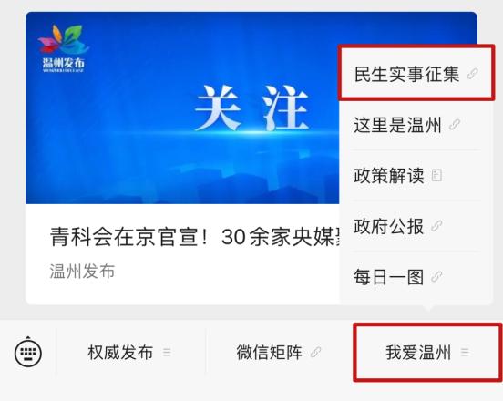(2)关注“温州发布”微信公众号,进入专栏留言,提出项目建议。