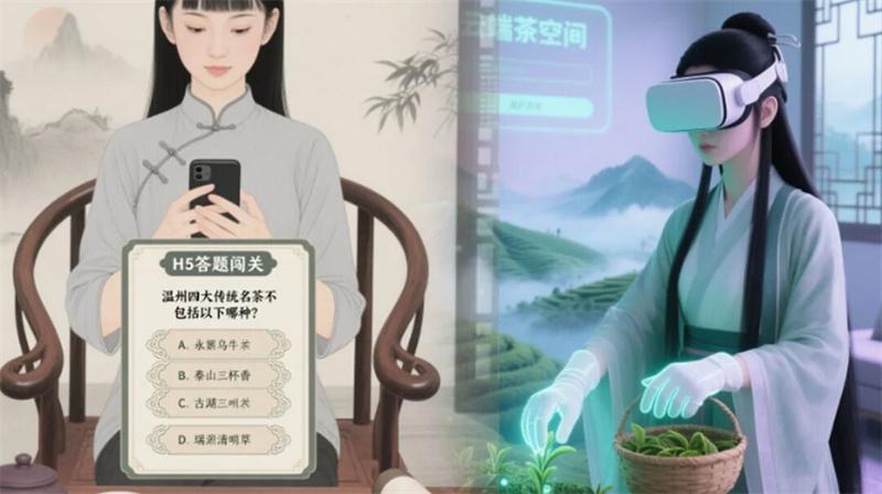 作为活动核心体验区之一的“智鉴台”,将成为元宇宙茶韵的集中展示地。通过手持交互设备,参与者无需远行便能“置身”青翠茶山,沉浸式体验从采摘新芽、亲手炒制到冲泡品茗的完整茶事流程。虚拟场景的逼真还原,既保留了茶文化的核心内涵,又以科技手段降低了体验门槛。同步上线的H5互动“寻茶上江”,以答题闯关形式普及茶知识,通关者可赢取限定茶包,让学习过程充满趣味。