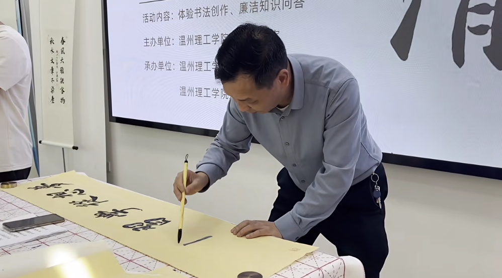 更难能可贵的是,方国富将笔墨才情化作公益力量。作为资深公益人,他连续多年参与“红七月服务月”书法活动,仅去年就走进杨府山公园及多个社区,开展公益写春联、送福字活动20场次。2017年起,他每周六走进温州孔庙四甲文化礼堂,从握笔姿势教起,为孩子们开设公益书法课,让传统文化在笔墨香中代代相传。在滨江街道全民终身学习活动周、温州理工学院校园等场合,总能看到他挥毫题字的身影,用笔墨为文化传承赋能。