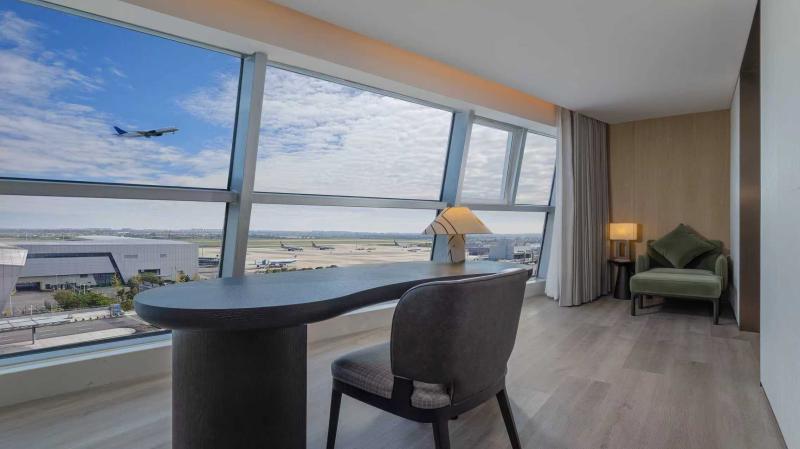 据介绍,酒店拥有320间(套)客房及套房,延续假日品牌明亮温馨的设计语言,并巧妙融入机场主题元素。客房配备齐全,特别设有品牌IP亲子主题房,满足家庭客群需求。酒店的餐饮体验深度结合本地特色:全日制餐厅提供中西融合创意美食;中餐包厢以“瓯菜为本,粤艺为精”为理念,打造高端餐饮场景;大堂吧则化身空港“微型会客厅”,融入温州文化符号,提供轻社交空间。