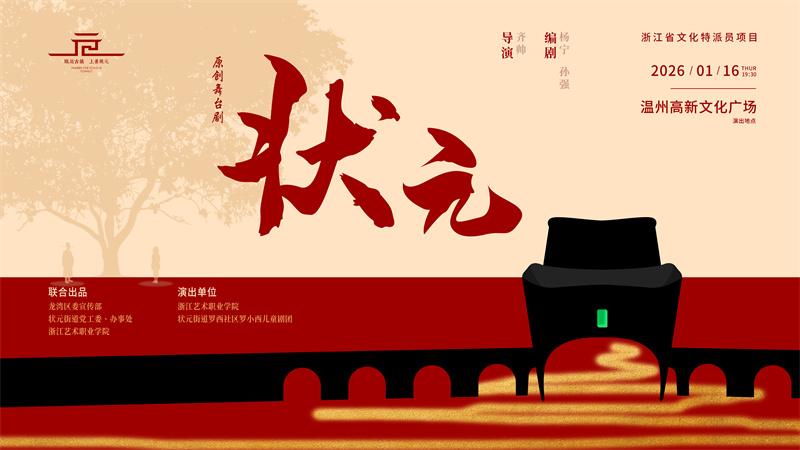 《状元》的上演,既是历史与现实的对话,也是龙湾区“文化特派员+基层文化阵地”模式的成功实践,更是文化特派员制度助力基层文化振兴的生动注脚。诚邀广大市民走进剧场,在瓯江潮声与状元精神中,共赴这场跨越时空的奋斗之约。(记者 夏凯南)