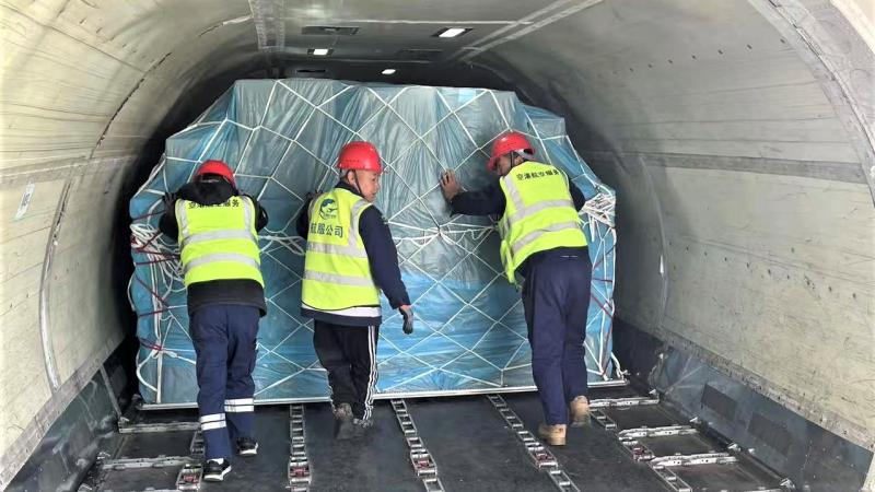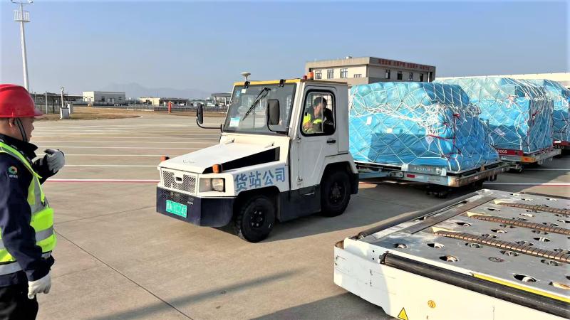 为顺利保障首航,货站公司提前部署,全体工作人员通力配合,连夜启动紧张有序的配载作业。通过科学调度与高效组织,将各类货物精准装载至集装板与集装箱,为7日上午十时航班准点起飞做好充分准备。温州机场联合温州海关共同开辟“绿色通道”,依托双方构建的“航线运输一查验通关一终端配送”全链条保障体系,针对性优化货物收运、安检及装卸全流程,反复推演进口方案,检查指定监管场地,夯实“落地即检”硬件基础,实现航班货物2小时内快速中转,达成“随到随检、检毕即发”的高效通关目标。