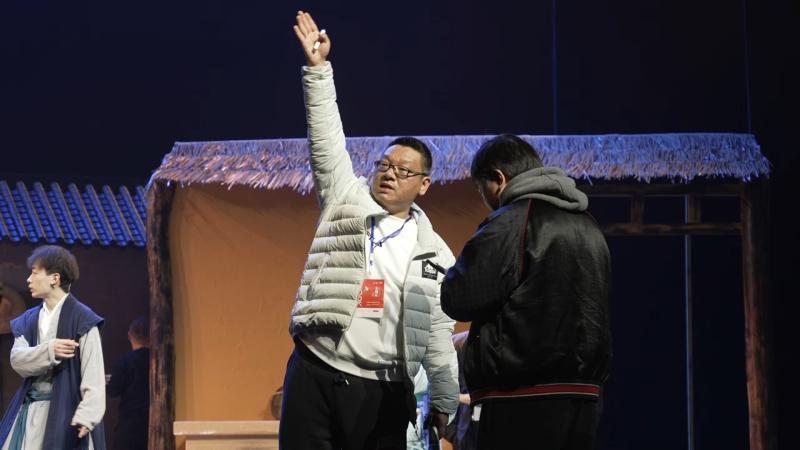 彩排现场,齐帅正与团队细致调整演员走位、台词节奏与灯光音效等多方协同工作。舞台布景配合虚实交织的光影设计,呈现古今场景的交替。剧中,赵建大在苦读求索中亦经历着前程的彷徨,而当代少年罗小西则在追求游泳梦想的路上,遭遇来自家庭的压力与自我怀疑。两人虽隔千年,却因相似的迷茫与坚持,借助一棵贯穿时空的古树,建立起跨越时代的情感共鸣。