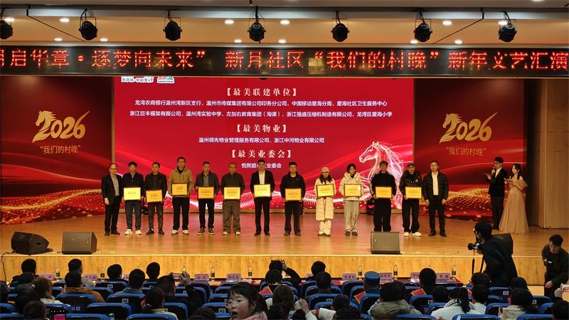 温州网讯 辞旧迎新之际,一场充满烟火气与文化味的“我们的村晚”在温州湾实验中学精彩上演。1月24日,这场由星海街道党工委、办事处主办,新月社区党总支、居委会承办,温州湾实验中学、星海小学等多家单位协办的“新月启华章 逐梦向未来”新年文艺汇演,以校地合作为纽带,汇聚邻里温情,为社区居民送上了一场精彩纷呈的文化盛宴。