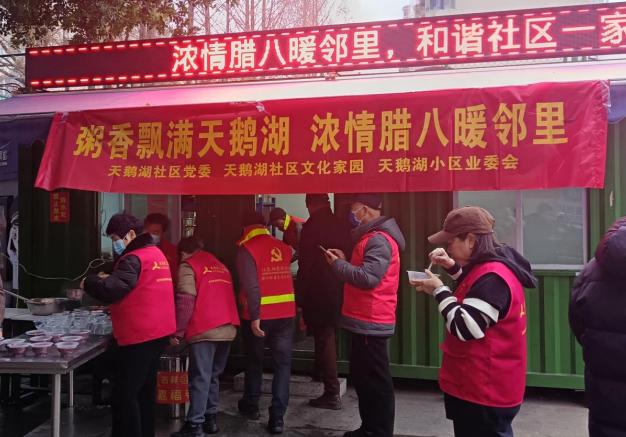 施粥送暖是此次系列活动的核心主线,各社区精准覆盖不同群体,让关怀无死角。天鹅湖社区党委牵头,联合流动党员社群、好人工作室,为各族居民、新居民代表分发热粥,还特意为户外工作者预留粥品由志愿者上门送达;创客小镇社区将粥品送到居民、企业职工、交警及环卫工人手中,驱散冬日寒意;雁湖社区联合街道侨联开展公益施粥,募得3700元慈善捐款,采购3000斤食材熬制甜粥,惠及侨胞侨眷、困难群众;蒲江社区精选糯米、红豆等八味食材科学配比,慢火细熬出兼具口感与营养的腊八粥。“这粥喝着暖身,更暖心里,社区把我们新居民当家人!”领取粥品的户外工作者张先生感慨道。
