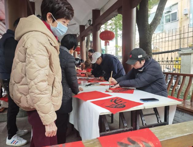 活动创新融入文化传承与便民服务,让传统节日焕发新活力。上庄文化礼堂组织20余名青少年开展腊八豆豆画活动,社工通过图文讲解腊八习俗后,孩子们用红豆、绿豆等食材粘贴“万事粥全”主题作品,“既动手又懂了节日意义,太有意义了!”在场的同学们纷纷举着作品说道。蒲江社区增设养生科普环节,义工详解食材养生功效及冬季食用禁忌,让居民“知其味更知其理”。雁湖社区更升级服务矩阵,书法家现场挥毫送春联,医护团队提供血压测量、健康咨询,义工队免费修补衣物,暖心抽奖环节让现场欢声笑语不断。