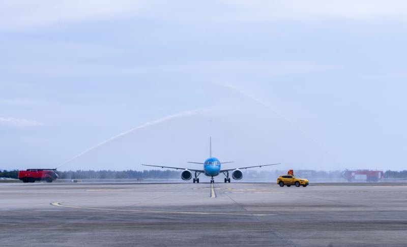 温州网讯 3月16日,南航C919型国产大飞机“大美湾区号”彩绘机平稳降落在温州龙湾国际机场,顺利完成广州至温州航线首航,航班承运旅客132人次、客座率达82%。飞机穿过民航最高礼仪之一“水门”,标志着C919正式投入温州机场广州快线运营,该航线实现国产大飞机常态化运营。