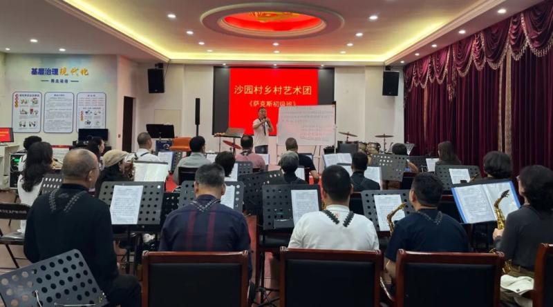 王会晓发现,很多村民没有乐理基础,他就用通俗易懂的话来讲,加上自己的理解和形象的比喻。“我们这有好多人都这么想:某某还不如我,他也学得会,我凭什么学不会?”就这样,越来越多村民被带动起来。如今,永兴街道沙园村艺术团已经形成了萨克斯、歌唱、舞蹈、民乐、电吹管等多支队伍。